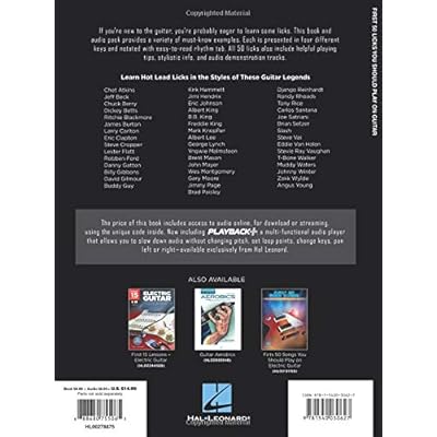 (Guitar Educational). If you're new to the guitar, you're probably eager to learn some licks. This book provides a variety of must-know examples. Each is presented in four different keys and notated with easy-to-read rhythm tab. All 50 licks also include helpful playing tips, stylistic inform, and audio demonstration tracks online for download or streaming. Licks presented include the styles of legendary guitarists like Eric Clapton, Buddy Guy, Jimi Hendrix, B.B. King, Randy Rhoads, Carlos Santana, Stevie Ray Vaughan and many more.