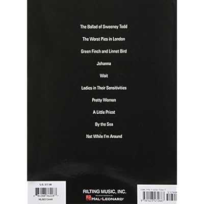 (Vocal Selections). Newly revised, with new music engravings, added songs, articles and photos. Includes The Ballad of Sweeney Todd * By the Sea * Green Finch and Linnet Bird * Johanna * Ladies in Their Sensitivities * A Little Priest * Not While I'm Around * Pretty Women * Wait * The Worst Pies in London.