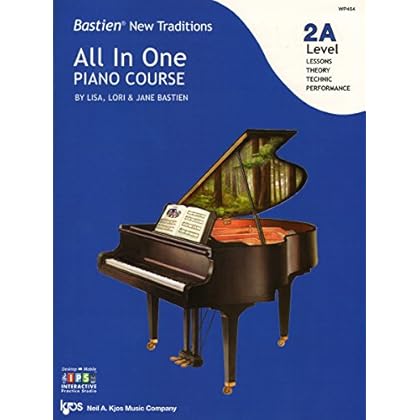 Bastien New Traditions is a comprehensive and integrated method for beginning piano study that is easy to use and paced just right for todayâ TMs busy students. Concepts are presented in a holistic way, with lesson, theory, and technic pages mixed with attractive performance pieces all in the same volume. A gradual multi-key approach is used allowing students to experience complete keyboard knowledge. There is a clear step-by-step presentation of concepts and skills with straightforward, simple reinforcement and review throughout the series. The learning sequence is carefully graded to ensure steady progress, and students will love the selection of music as well as the beautiful watercolor illustrations.Level 2AScales and Chord ProgressionsC, G and F scalesKey signatures for C, G and FPrimary chords in root positionChord progressions including I IV I V7 I6ths and 7thsHarmonized melodies with I, IV and V7 chords